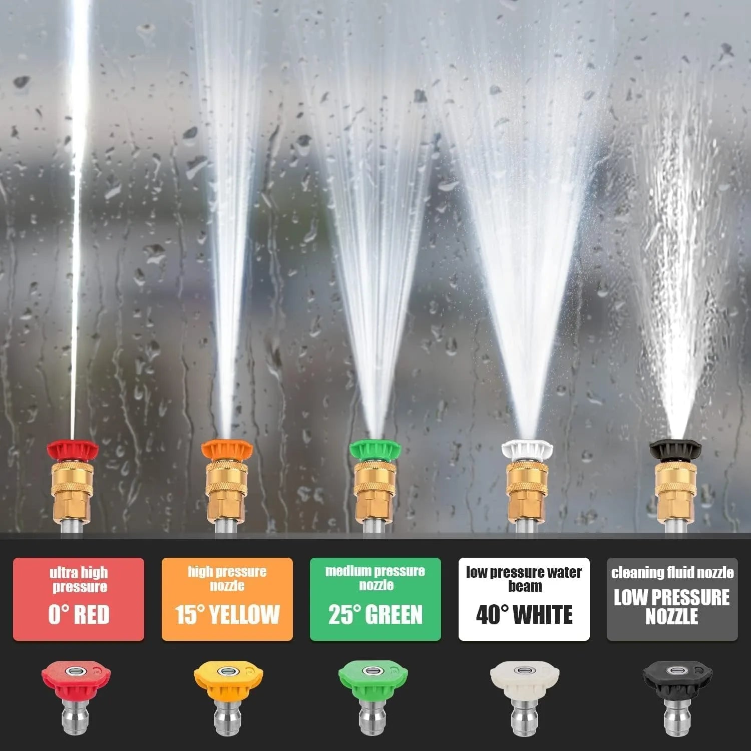 - Versatile Cleaning Options: 5 quick-connect nozzles (0°, 15°, 25°, 40°, 60°) plus soap, plus a 1L soap/detergent tank with an adjustable switch for precise cleaning and wax-free shine on vehicles, patios, and more.